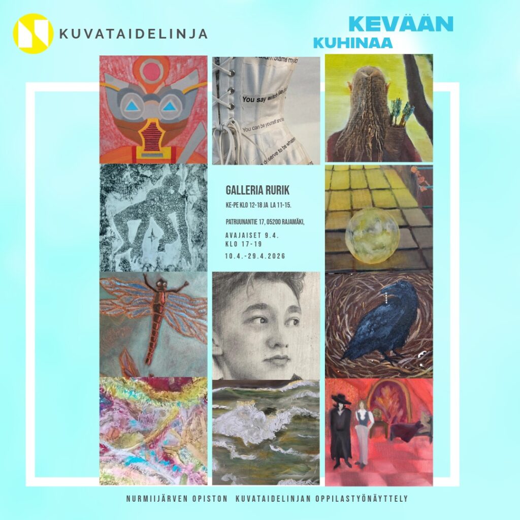 Nurmijärven opiston syksyllä 2025 startanneen uuden kuvataidelinjan näyttely kerää yhteen 11 aikuisopiskelijan teoksia lukuvuoden varrelta.